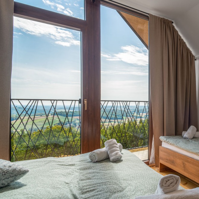 Kompleks je smješten na južnoj padini Kalnika na mirnom mjestu. Okružen je zelenilom i pruža mirnu oazu za odmor. Svaki dio kompleksa pruža divan, panoramski pogled. Smještaj se sastoji od središnjeg, zajedničkog dijela i dvije kuće sa spavaonicama.